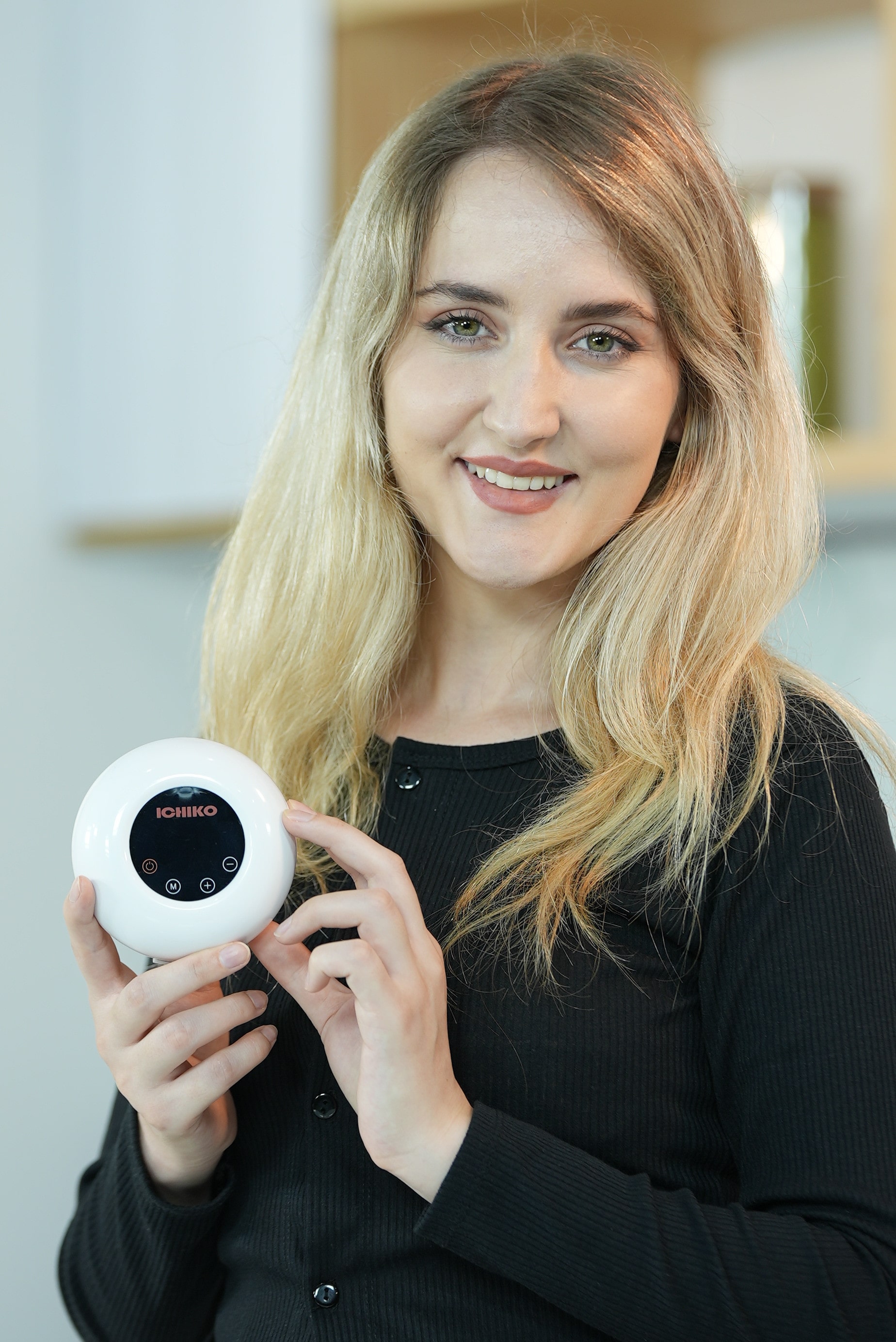 Thiết kế máy hút sữa ICHIKO nhỏ gọn, tiện dụng cùng phím bấm cảm ứng có đèn nền dùng được trong bóng tối.