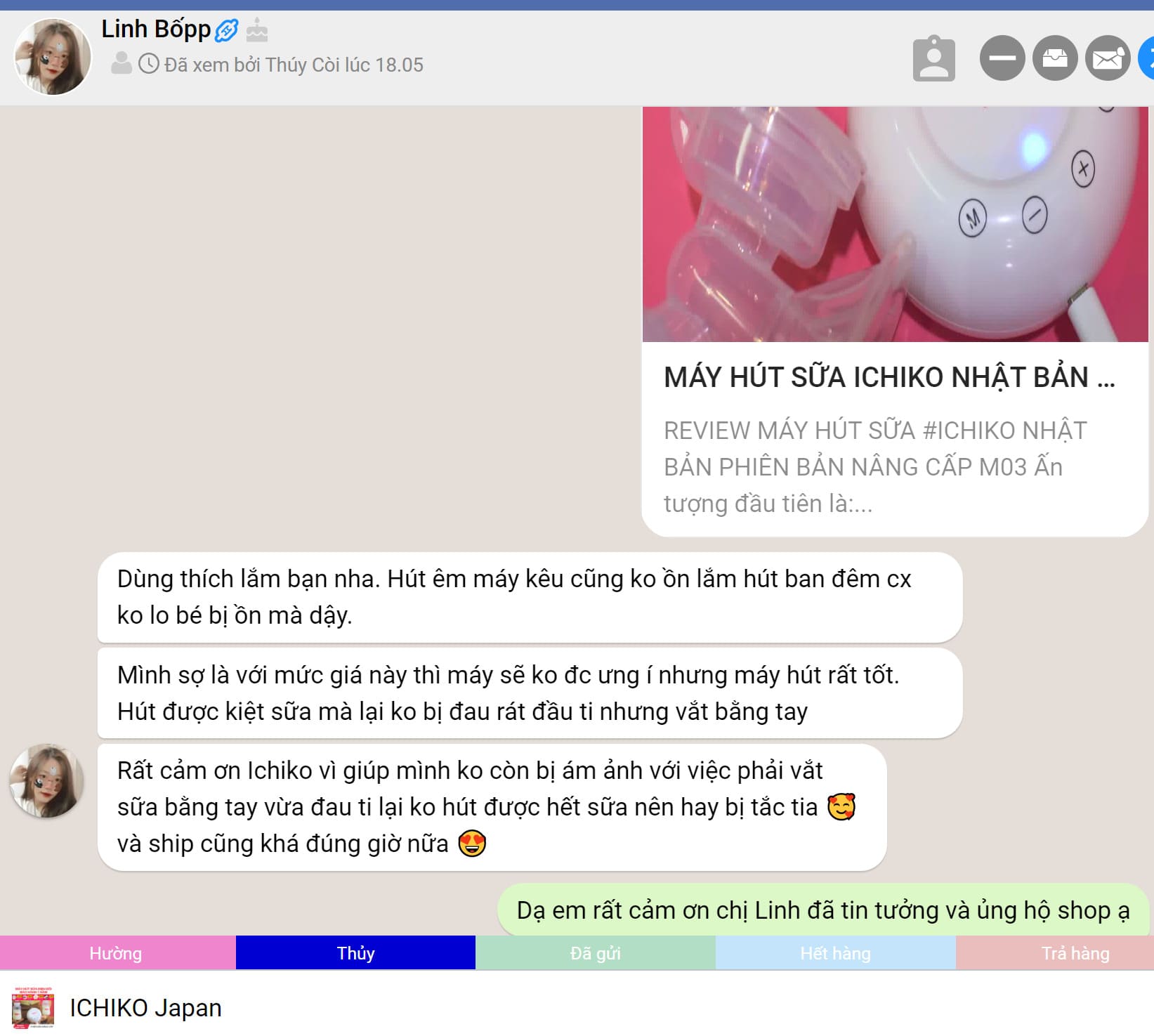 PHẢN HỒI KHÁCH HÀNG KHI MUA MÁY HÚT SỮA ICHIKO NHẬT BẢN
